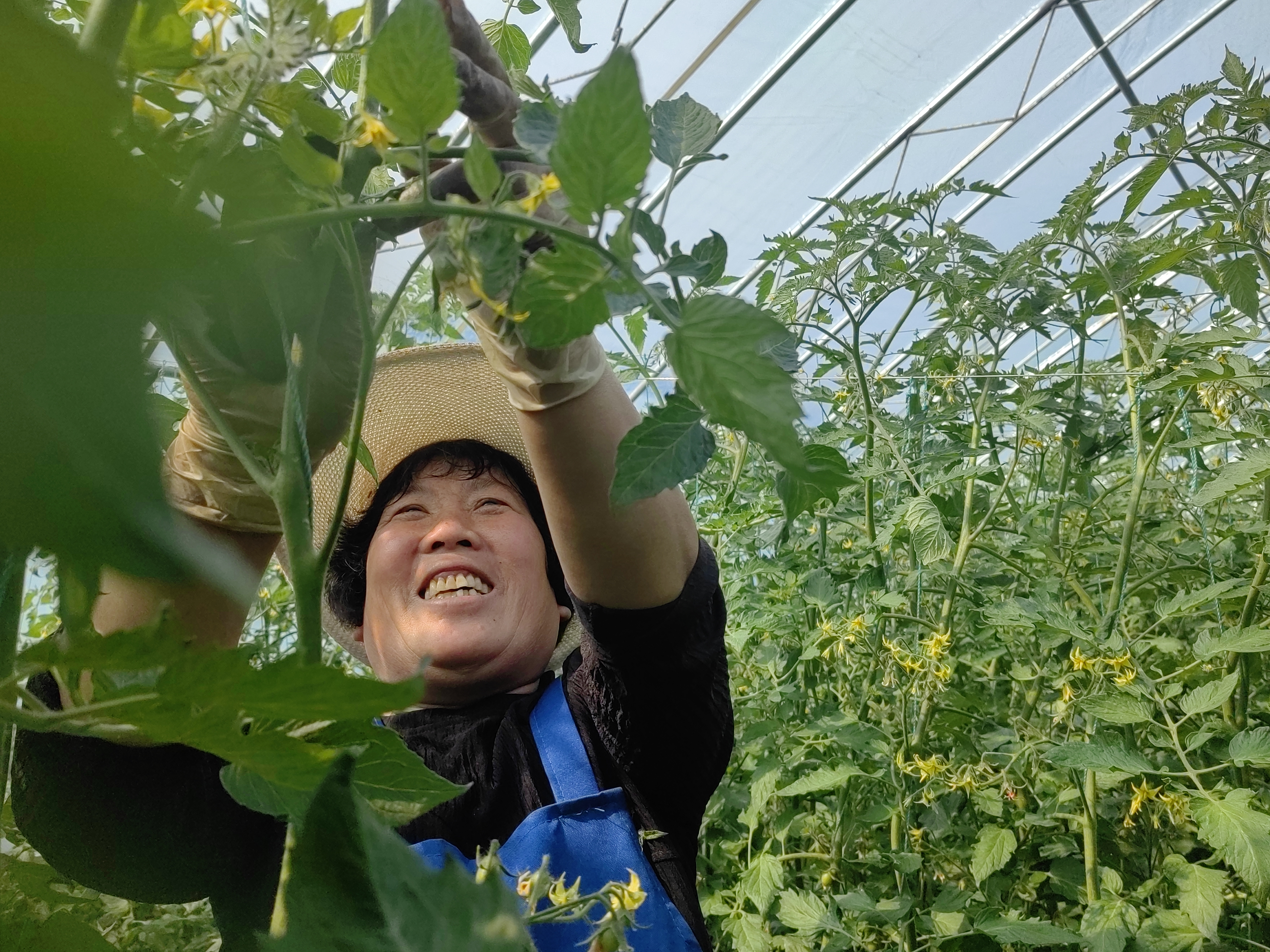 智慧农业促发展 走进智慧蔬菜大棚,棵棵白菜青翠饱满,西红柿花缀满枝头,蜜蜂在花丛中忙碌不停,几名村民正熟练地修枝、消杀。这座占地15亩的蔬菜基地,共建有3座单体智能大棚,配备水肥一体、智能控温、物理病虫害防治等现代化设备与技术,既保障了蔬菜品质,也为村民提供了稳定收入。 “目前,大棚内种有2.4万棵特色白菜、1万余株西红柿,预计总产量分别达10万斤和6万斤。”村党支部书记王子怡漫步在温暖的大棚里,像是在欣赏自己精心培育的孩子,“眼下,白菜已上市,主要定向供应县域内长者食堂和多所学校食堂,实现了农产品从种植到销售的无缝衔接。” 今年,沂源提出“农业供应链提升年”战略,通过标准化、规模化种植和数字化、智能化场景应用,提升农业供应链水平。王家泉村智慧大棚的蓬勃发展,便是拓宽村民收入渠道、壮大村集体经济的一个缩影。 “再有一个月,这些西红柿就大批成熟啦!”王子怡小心地托起一簇黄色的花朵,欣喜地说,“绿色种植能让果实香甜多汁,采摘期将持续到6月份,欢迎大家前来采摘!”