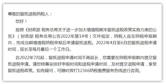 留抵退税申请时间提醒