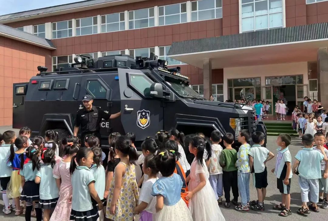 “哇!装甲车来啦!”当防暴装甲车开进校园时,小朋友们顿时一片欢呼!
