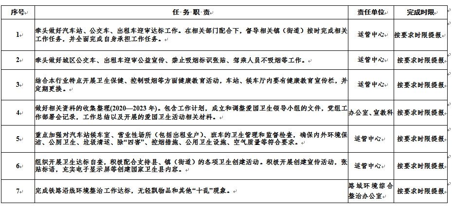 沂源县交通运输局创建国家卫生县重点工作任务分工