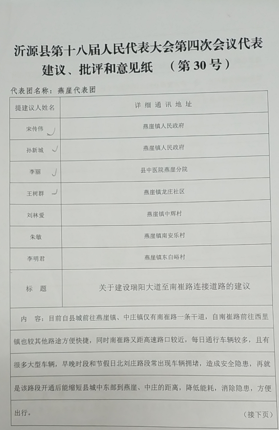 对燕崖代表团提出的县城到燕崖、西里的主干道建设问题,我局组织进行了专项调研,结合沾临高速建设,将对县道赵中路实施改建,按照二级路标准建设,同时解决县城通往燕崖主干道及高速路朱泉村出口至县城开发区连接线问题。赵中路改建工程计划沾临高速主体工程完成后实施。