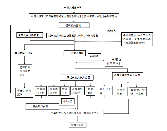 对申请人提出的政府信息公开申请,本机关将根据不同情况分别作出答复,详见本机关处理政府信息公开申请流程图。