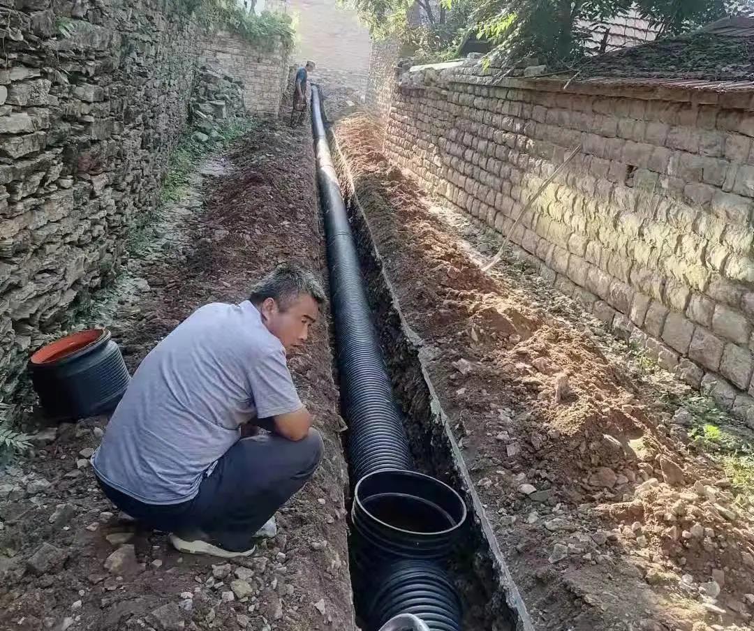 各村污水治理工程正在热火朝天施工中。