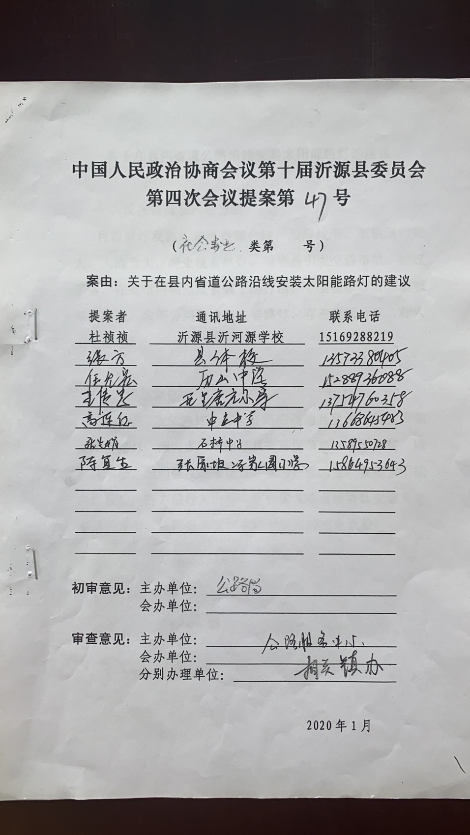 中国政治协商会议第十届沂源县委员会第四次会议提案第47号“关于在县内省道公路沿线安装太阳能路灯的建议”已收悉,现答复如下: