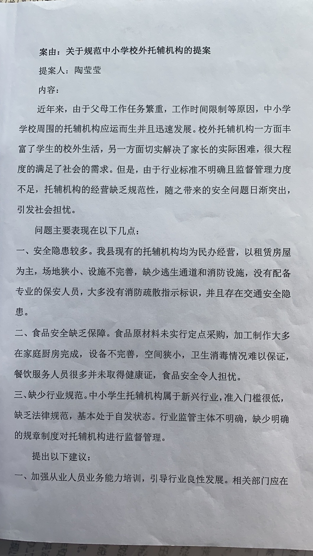 关于规范中小学校外托辅机构的答复