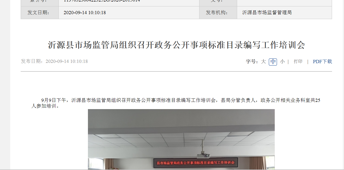 2025年,沂源县市场监管局主动公开政府信息情况: