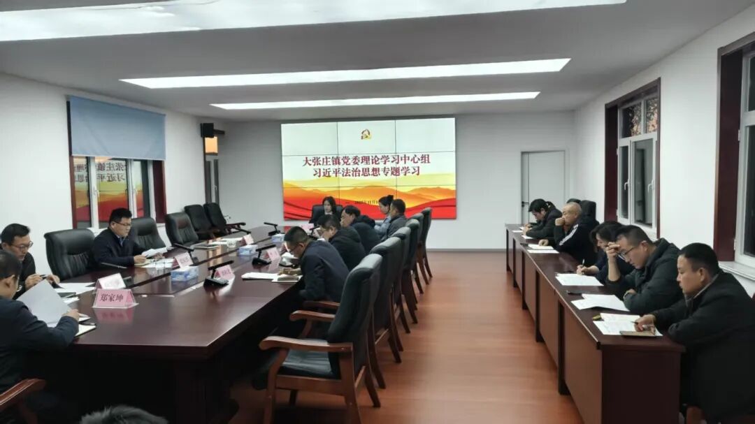 为深入学习贯彻习近平法治思想,全面提升依法治理能力水平,近日,沂源县大张庄镇党委理论学习中心组召开习近平法治思想专题学习会。会议由镇党委书记张庆胜同志主持,全体镇党委理论学习中心组成员参会。