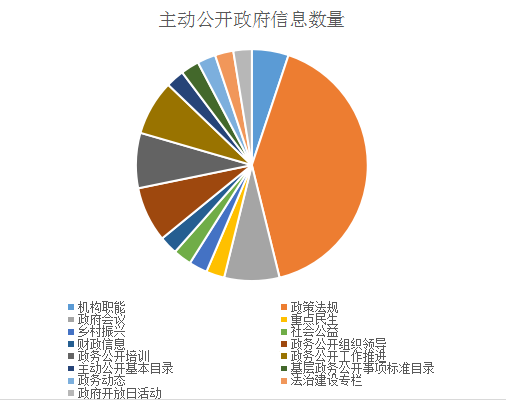 根据相关要求,我镇认真对政府信息进行梳理,累计主动公开政府信息32条,其中政策法规方面的信息20条,业务工作12条。信息公开工作中,我镇严格按照主动公开、依申请公开、不予公开的政府信息分类要求,坚持以主动公开为原则,不公开为例外,精心编制目录,建立健全信息公开平台,不断完善和改进政府网站的结构和内容,及时将党委、政府的工作动态和亮点工作准确地向全社会公开,做到拓宽公开渠道、丰富公开形式。