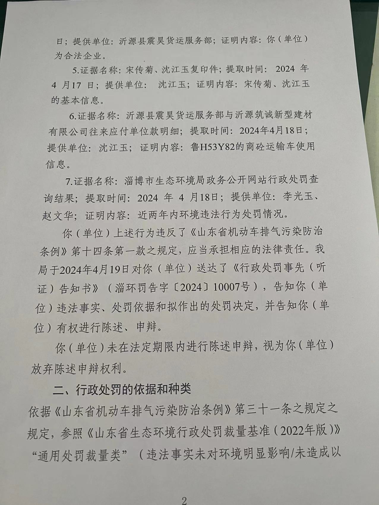 环境行政处罚信息:沂源县震昊货运服务部擅自闲置机动车排气污染控制装置