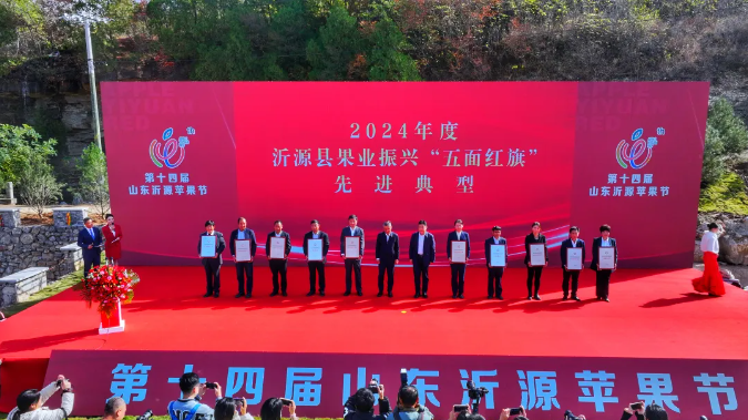 活动现场议程满满,内容丰富。第十四届山东沂源苹果节围绕“文旅农商展风采 ‘锶都’沂源健康行”主题,通过主旨演讲、成果发布、揭牌签约、颁奖授牌、母树认领等环节,深入探讨了当前水果产业高质量发展的路径分析,肯定了“沂源红”富锶苹果的品质,为日后沂源果业发展指明了方向,为沂源乡村产业振兴提供了有力支撑。