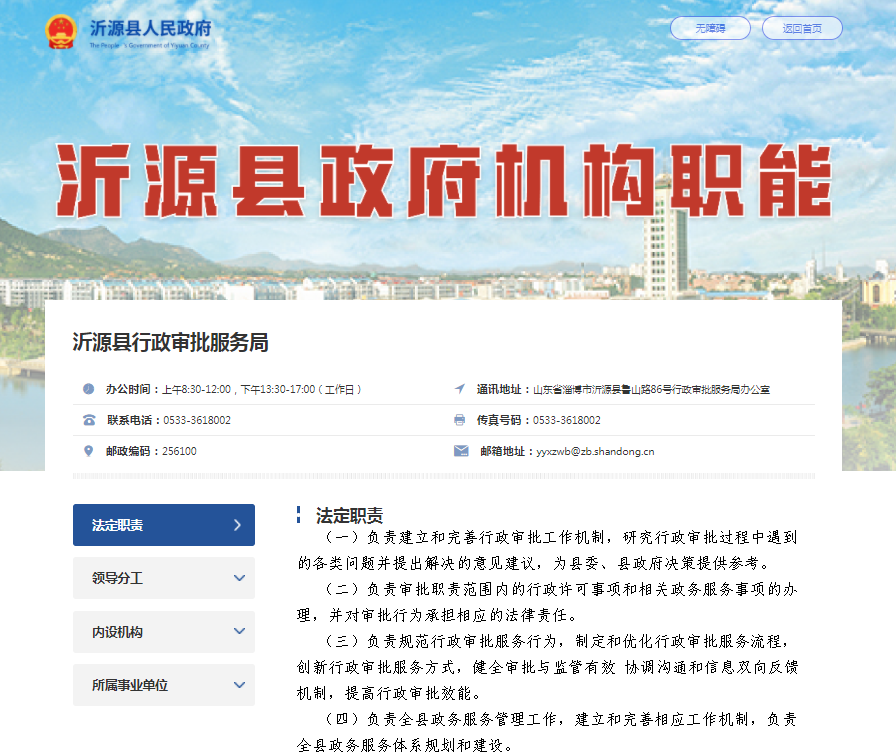 本机关政府信息公开工作工作机构为:沂源县行政审批服务局办公室。