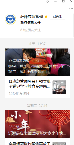 (四)政府信息公开平台情况信息公开平台主要为县政府网站,同时发挥政务微信、移动客户端灵活便捷优势,利用“应急管理”公众号等,做好信息发布、政策解读和办事服务工作,增强公开实效,提升服务水平。加强政府网站发布审核机制,强化互动和服务功能,保证发布信息内容合法、完整、准确、及时。