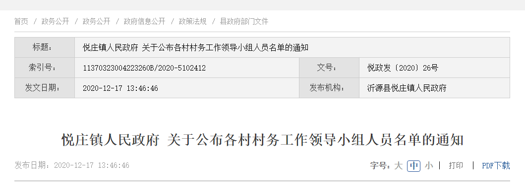 2025年,沂源县悦庄镇人民政府深入贯彻落实上级关于政务公开工作的决策部署,紧紧围绕全镇中心工作和群众关切,持续深化公开内容,优化公开平台,完善公开机制,着力提升基层政务公开标准化规范化水平。