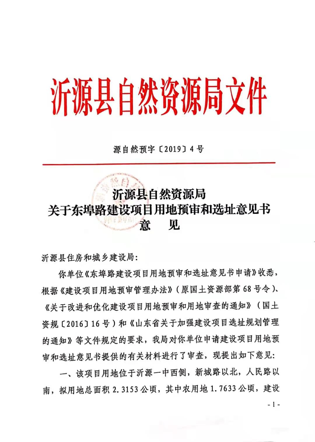 标题: 沂源县自然资源局关于东埠路建设项目用地预审和选址意见书意见