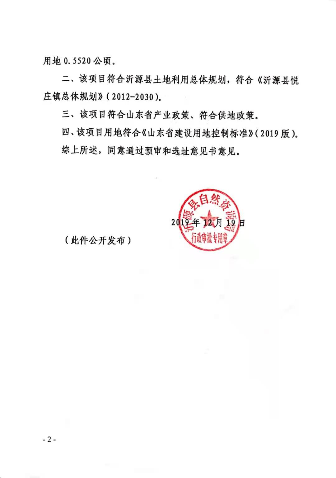 沂源县自然资源局关于东埠路建设项目用地预审和选址意见书意见