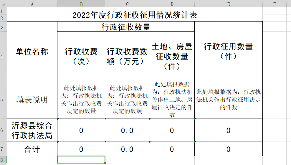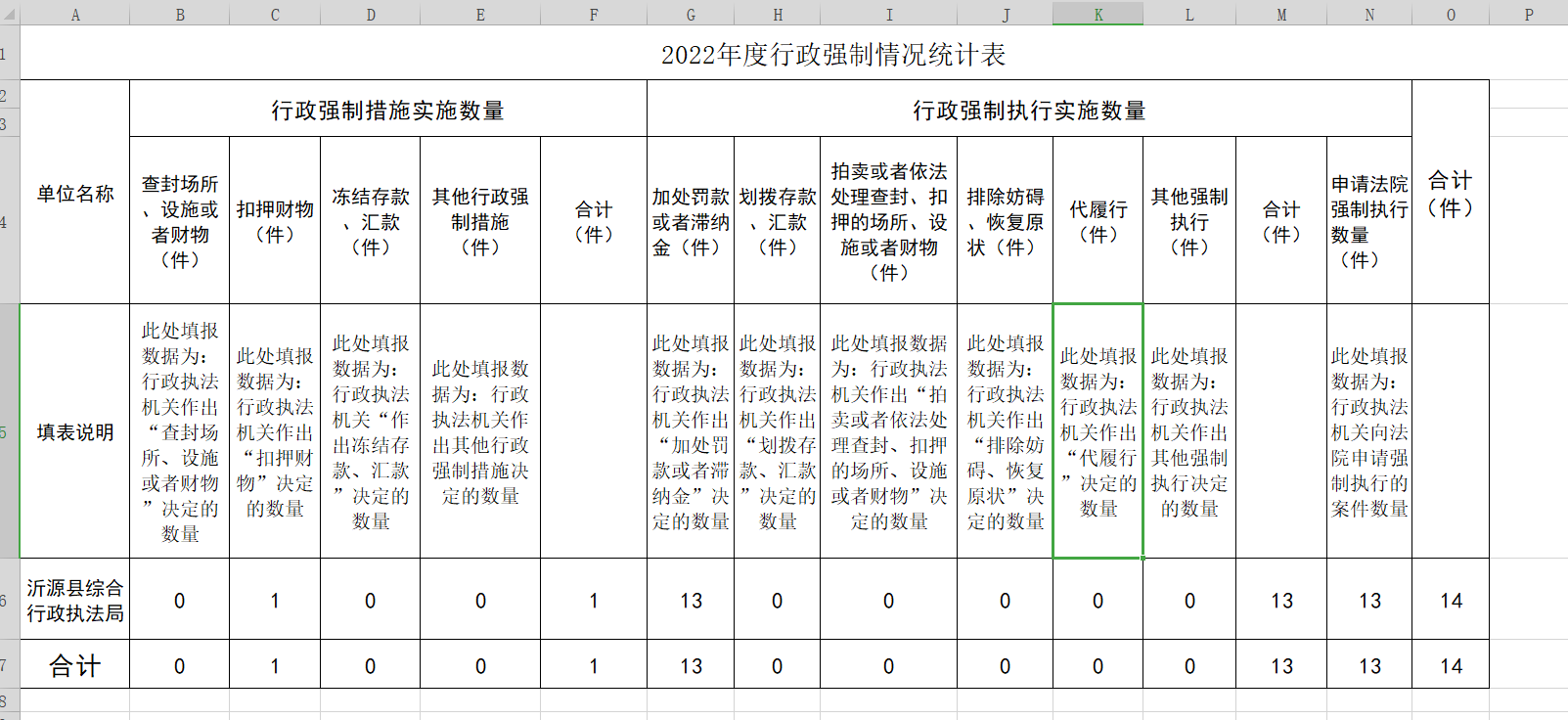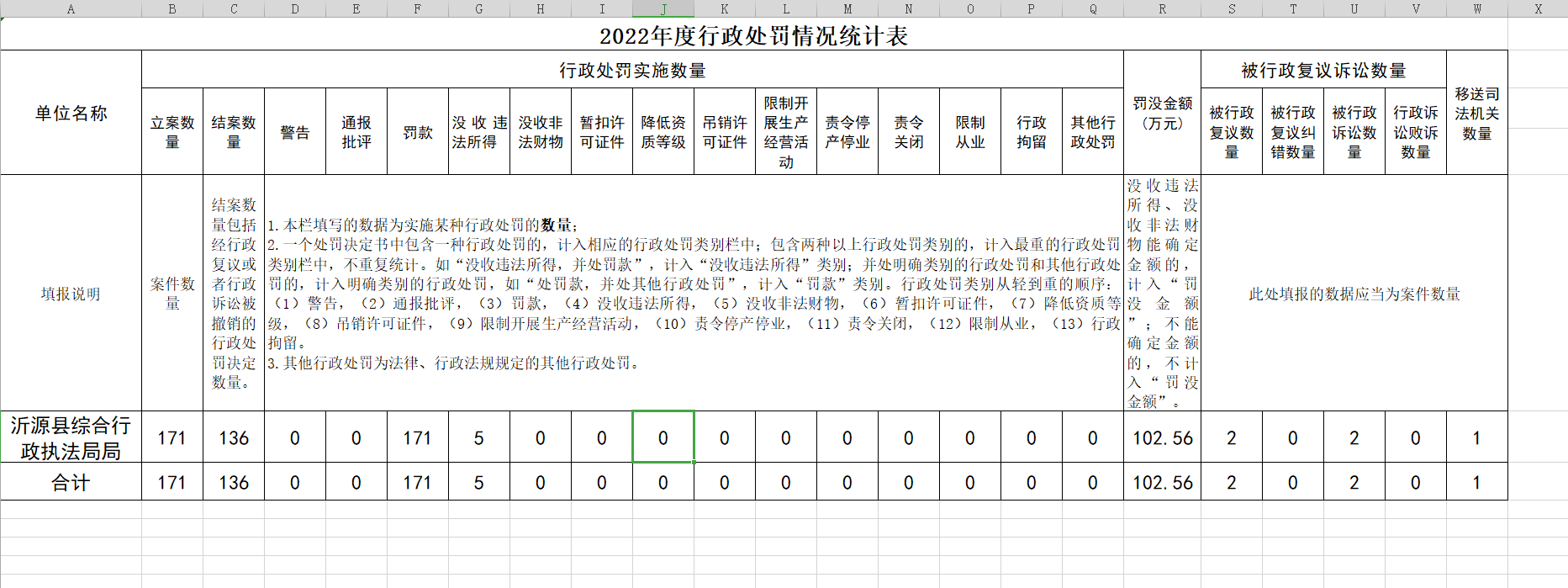 标题: 沂源县综合行政执法局2022年度行政执法统计年报